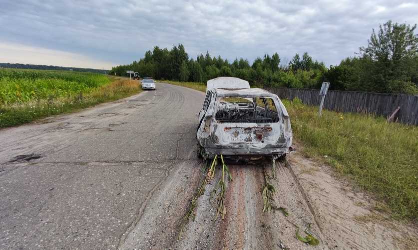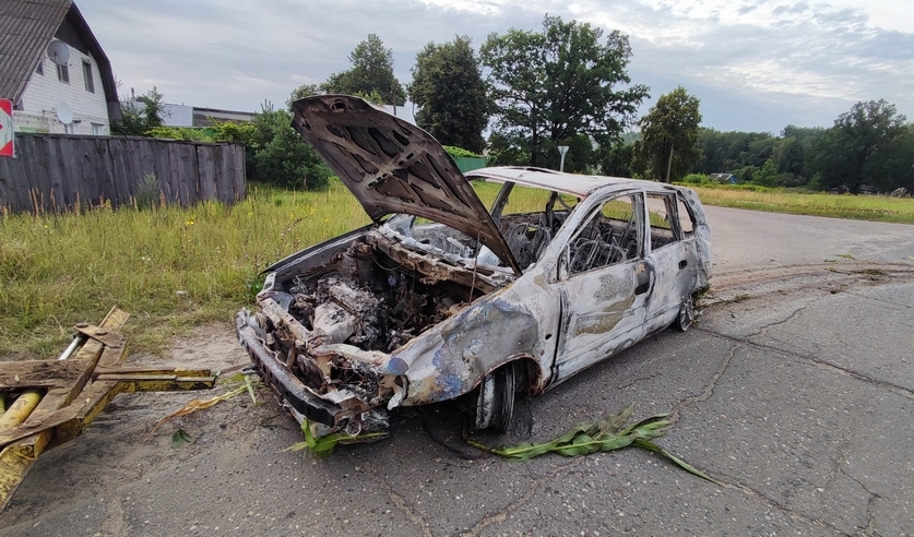 Водитель не остановился и продолжил движение. Он доехал до дома родственников, посовещался со всеми и направился за город. На кукурузном поле вблизи поселка Сож Гомельского района поджег свой автомобиль.