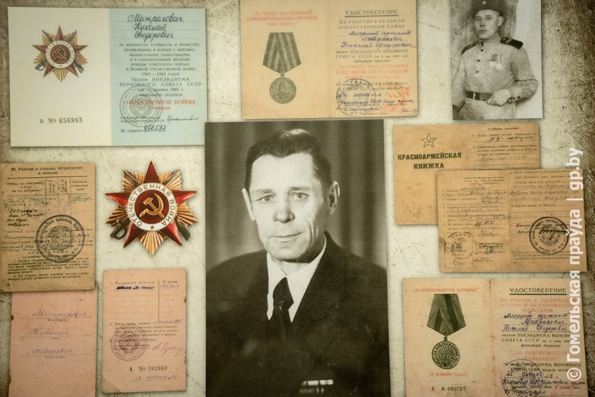 По словам Николая Митраховича, его отец Николай Федорович был человеком скромным, редко рассказывал о том, что ему пришлось пережить на фронте. Он родом из Светлогорского района. Когда началась война, как раз был призывного возраста, поэтому, как и других местных жителей, его сразу отправили на фронт. Но очень скоро попал в плен, из которого удалось сбежать вместе с несколькими товарищами. Партизанил, в 1943-м дал присягу, принимал участие в боевых действиях в рядах 65-й армии под командованием дважды Героя Советского Союза генерал-полковника Павла Батова.