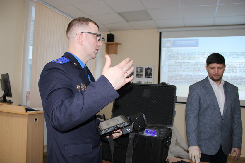 На площадке возле университета сотрудники криминалистического отдела и следственного управления УСК наглядно показали организацию работы на месте дорожно-транспортного происшествия со смертельным исходом. В учебных секторах криминалистического полигона, созданного несколько лет назад при непосредственном участии сотрудников Следственного комитета, следователи провели мастер-классы по первоначальным следственным действиям по уголовным делам о незаконном обороте наркотиков и убийстве. В криминалистической лаборатории будущим юристам рассказали о современных технических средствах, применяемых в следственной работе. Неподдельный интерес и у студентов, и у почетных гостей вызвал портативный лабораторный комплекс для выявления скрытых следов «Светоч-К».