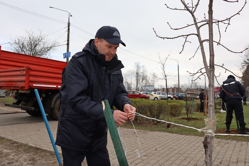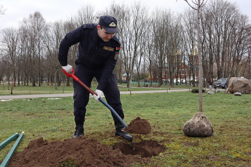 Сборная команда областного аппарата благоустраивала аллею УСК по Гомельской области в парке «Фестивальный» возле храма святого Архангела Михаила – единственной в Гомельской епархии Войсковой церкви. Начальник управления кадров и идеологической работы УСК Дмитрий Кудимов приехал на субботник вместе с сыном Михаилом, крещеным в этом же храме. Опытные садоводы вместе с молодежью высаживали саженцы липы возле памятного знака следственного ведомства.