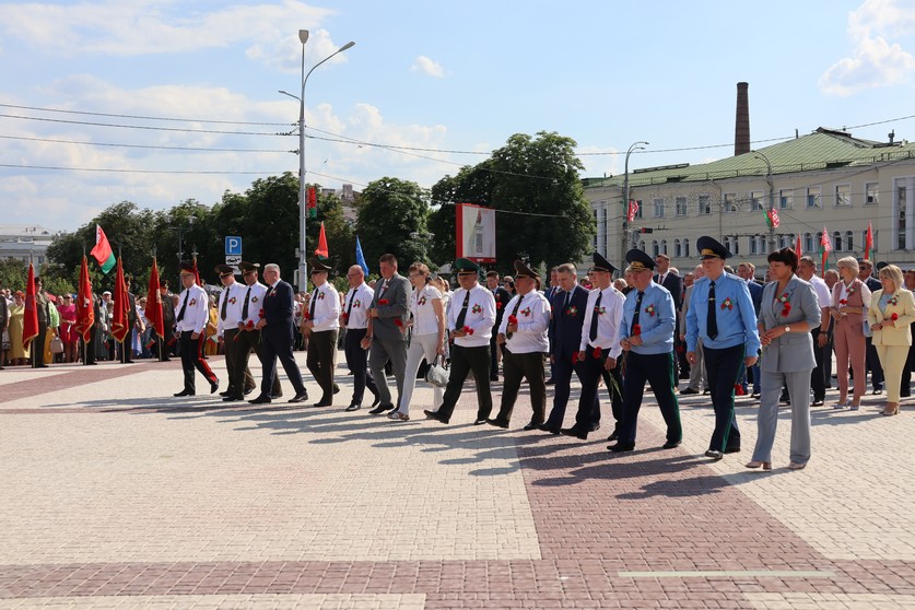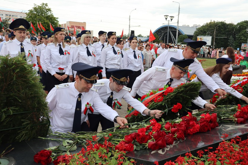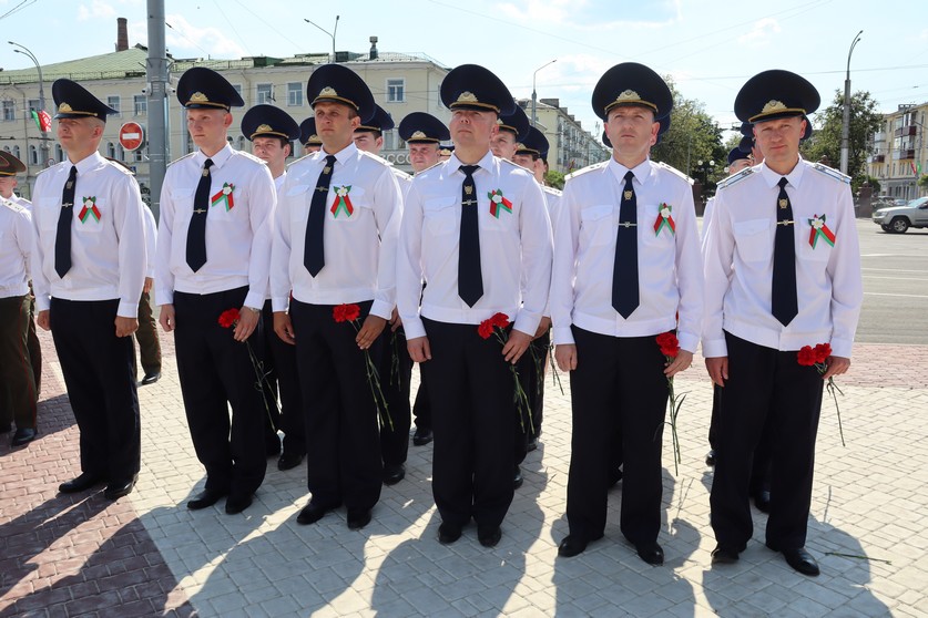 В рядах патриотов, чтущих героическое прошлое своих предков, торжественно стояли сотрудники городского и областного следствия. Офицеры вместе с патриотами-единомышленниками почтили память защитников минутой молчания, возложили цветы к братской могиле участников обороны Гомеля в августе 1941 года и тех, кто погиб при освобождении города в 1943 году.