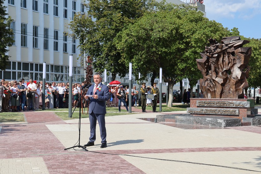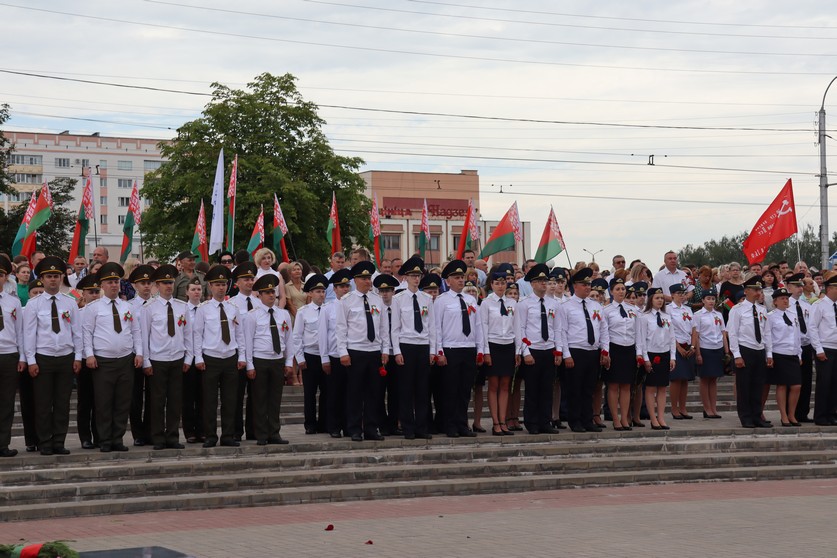 Торжественный митинг прошел на Аллее Героев. Отдать дань уважения героям войны приехали представители органов власти, депутатский корпус, граждане различных профессий и возраста, которых объединяет любовь к своему Отечеству. Разделить важнейшее для белорусов событие прибыла делегация из Российской Федерации.