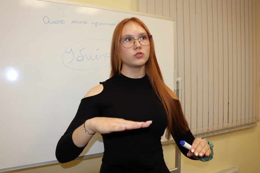 Яркая рыжеволосая первокурсница с интересующимся взглядом Александра Нахаенко не скрывает: инициатива получить такое образование поступила от папы. "Можно сказать, это он меня нацелил получать юридическое образование и профессию следователя. Он всегда видел меня сотрудником правоохранительной сферы. И в 9-м классе я решила для себя выбрать этот путь", - рассказывает свою историю она.