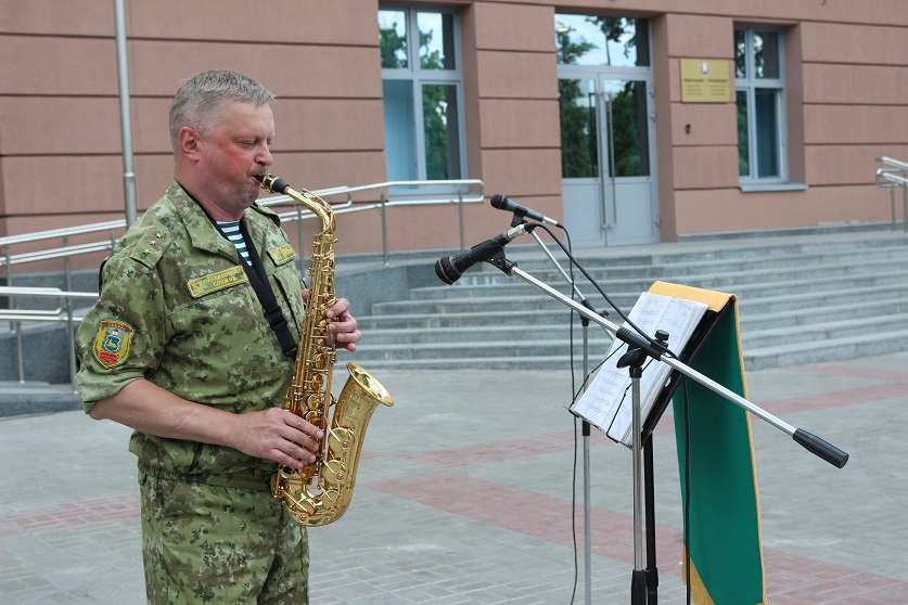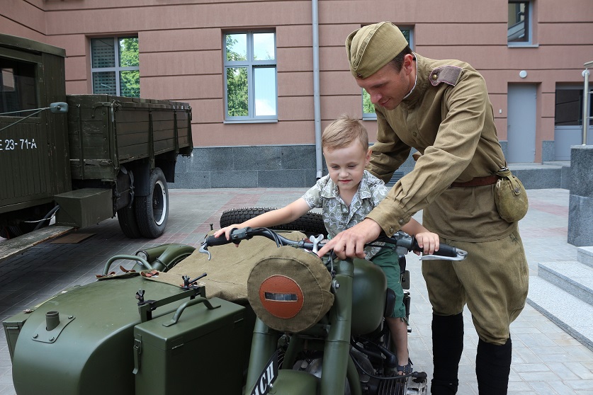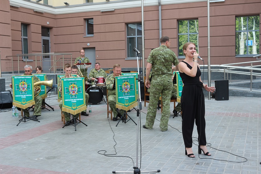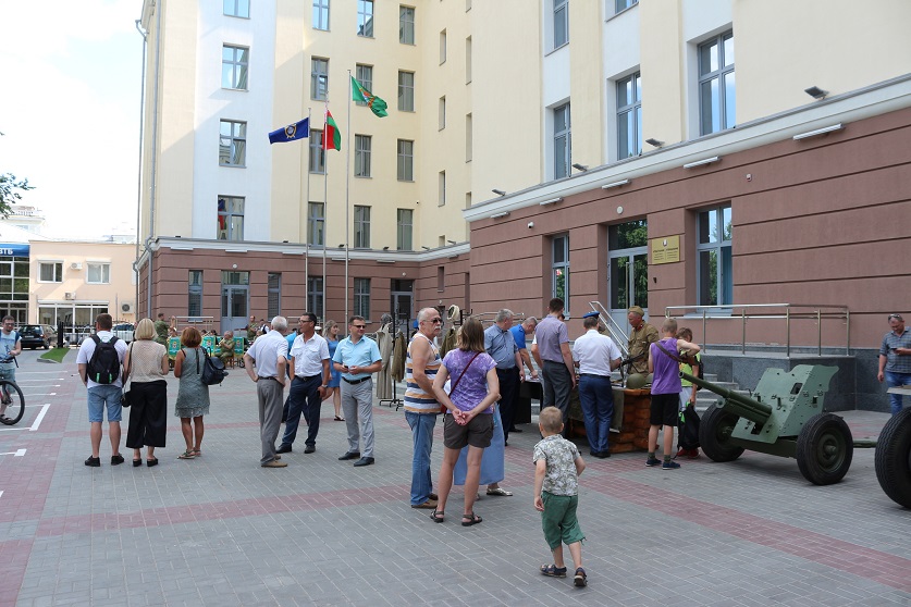 На площадке перед административным зданием областного следствия была развернута экспозиция военной техники и оружия времен Великой Отечественной войны, установлены информационные стенды. Военный оркестр Гомельской пограничной группы исполнял произведения на военную и патриотическую тематику.