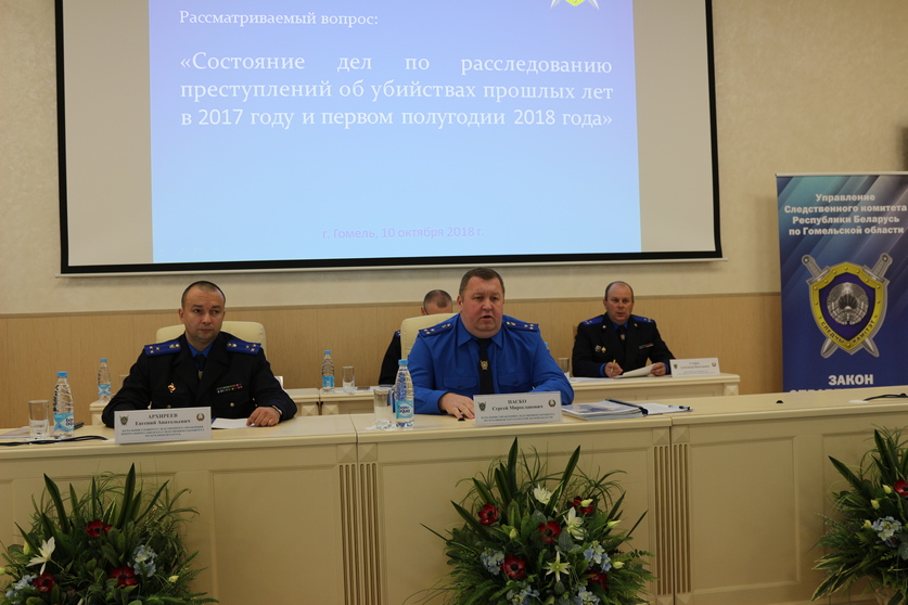 На совещании было отмечено, что в Гомельской области за рассматриваемый период времени принят ряд организационно-распорядительных мер, направленных на активизацию работы по расследованию убийств прошлых лет. Создана постоянно действующая межведомственная рабочая группа по изучению уголовных дел об убийствах прошлых лет, сформировано несколько рабочих групп по «кустовому» территориальному принципу из числа наиболее опытных следователей следственных подразделений, специализирующихся на расследовании уголовных дел указанной категории.