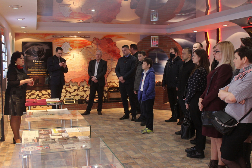 Офицеры и гражданские работники вместе со своими детьми посетили музей истории Чернобыля – одну из главных экспозиций музея пожарного дела в Гомеле. С большим вниманием экскурсанты выслушали рассказ об огнеборцах, ставших на пути атомного огня, ознакомились с документами, фотографиями и личными вещами ликвидаторов.