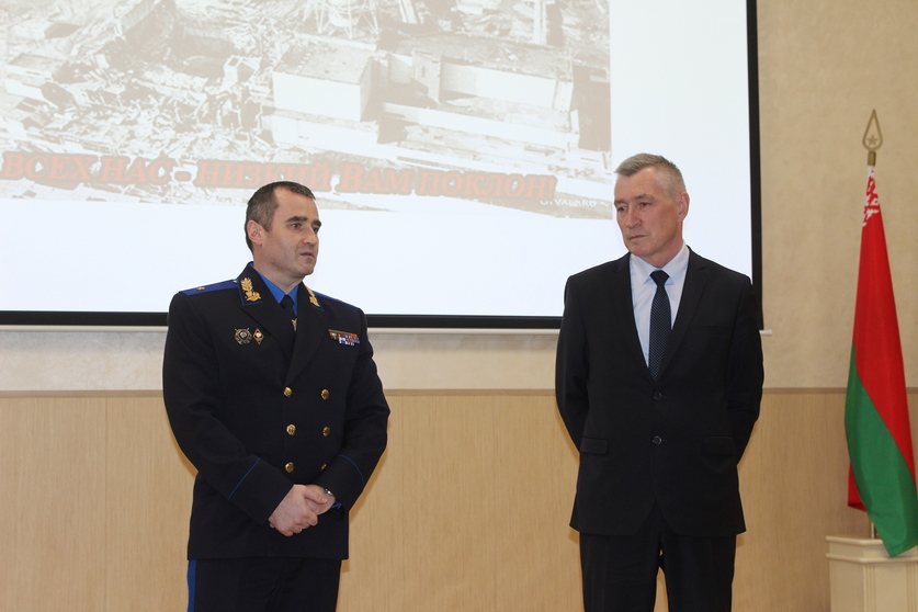 В областном аппарате прошло тематическое мероприятие с участием руководства и личного состава управления. Для сотрудников был организован просмотр документальных фильмов о событиях 1986 года и последующих этапах преодоления последствий катастрофы на ЧАЭС. Старший следователь следственного управления Виктор Судаков поделился своими воспоминаниями о несении службы по охране общественного порядка на территории зоны отселения в Хойникском районе в составе сводного отряда сотрудников органов внутренних дел.