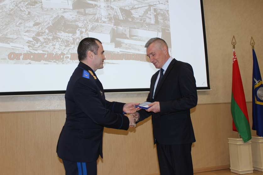 Начальник УСК Сергей Удовиков вручил ликвидатору нагрудный знак различия управления Следственного комитета по Гомельской области. Как отметил глава областного следствия, ликвидаторы последствий аварии на Чернобыльской атомной электростанции проявили мужество и самоотверженность при исполнении служебного долга, ценой невероятных усилий и собственного здоровья минимизировали последствия техногенной катастрофы. Руководитель подчеркнул значимость проводимых государственных программ по возрождению загрязненных радионуклидами территорий.