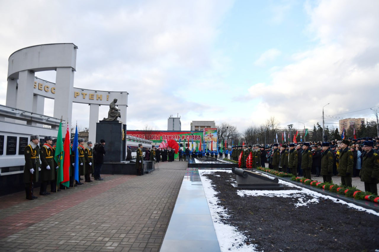В память о героизме предков современные защитники Отечества – сотрудники Следственного комитета Республики Беларусь, прошли торжественным маршем в парадном расчете военнослужащих Гомельского гарнизона.