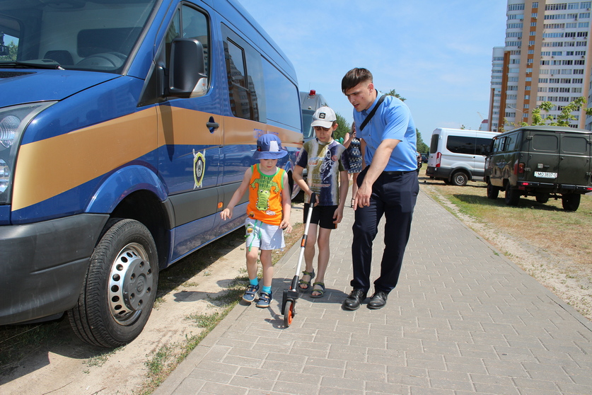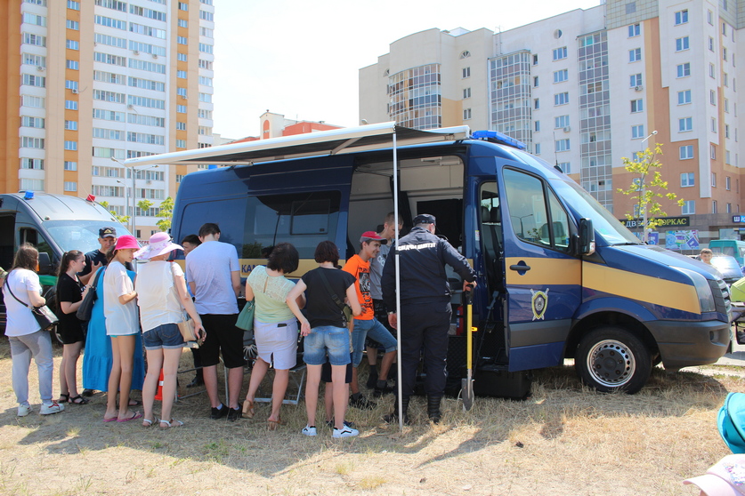 С деятельностью Следственного комитета юных горожан знакомили сотрудники криминалистического отдела и управления кадров УСК по Гомельской области. На протяжении дня работала выставка криминалистической техники. В ходе непринужденного общения сотрудники рассказывали подросткам о профессии следователя, раздавали листовки, объясняли порядок работы на местах происшествий, демонстрировали возможности технико-криминалистических средств. Посетители выставки с удовольствием тестировали работу переносного лабораторного комплекса для обнаружения биологических следов «Светоч-К», металлоискателя и прибора для измерения расстояния. Смышленая детвора отвечала на вопросы тематической викторины и получала жетоны для приобретения сувениров от организаторов мероприятия. Молодежь с интересом общалась с представителями следственного ведомства, используя уникальную возможность открытого диалога.