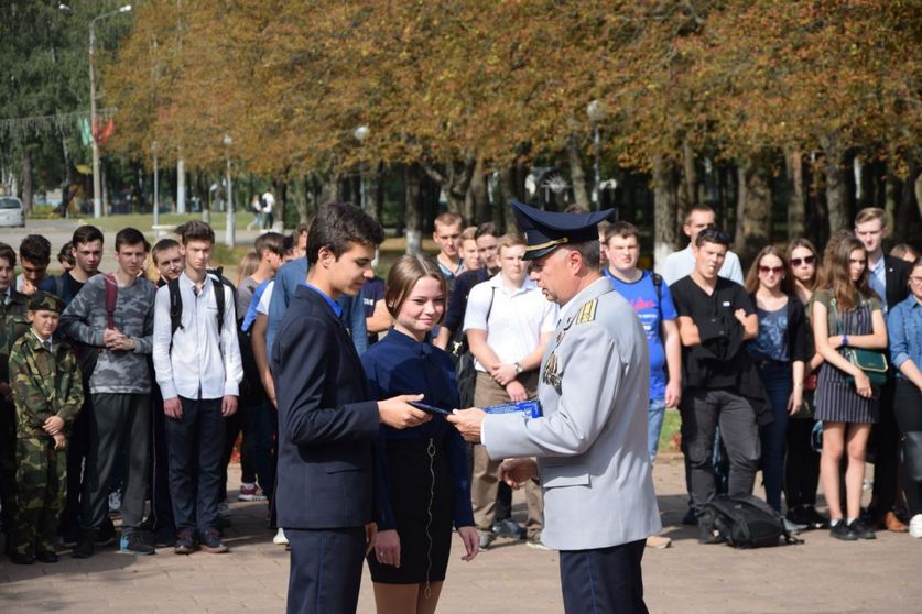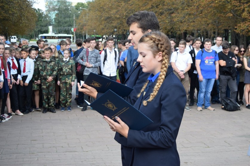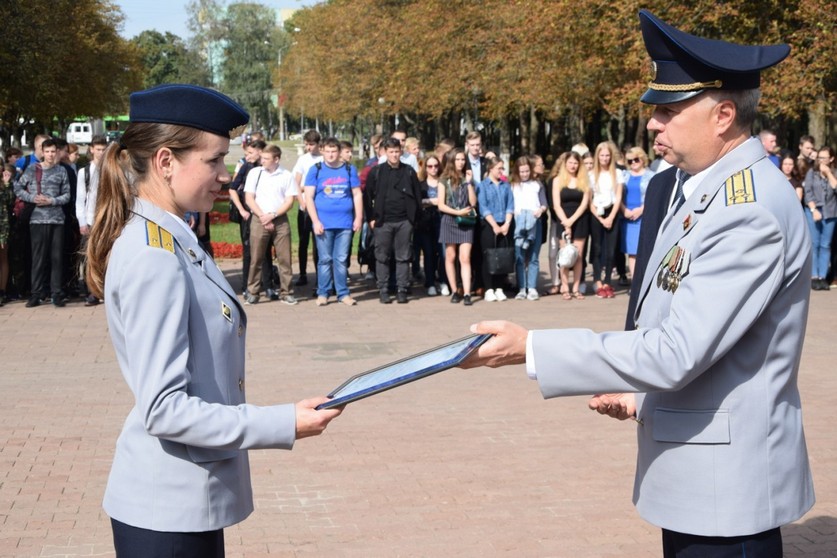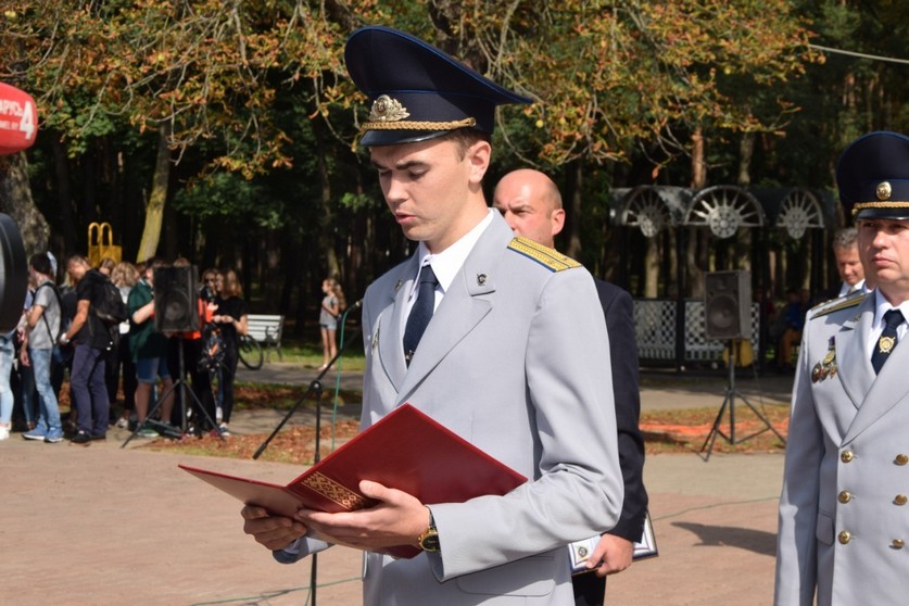 После завершения ритуала учащиеся классов юридической направленности гимназии №56 и СШ №44 г.Гомеля, функционирующих под эгидой УСК, перед лицом своих сверстников и молодых офицеров пообещали быть преданными Родине, служить примером честности, справедливости и благородства.