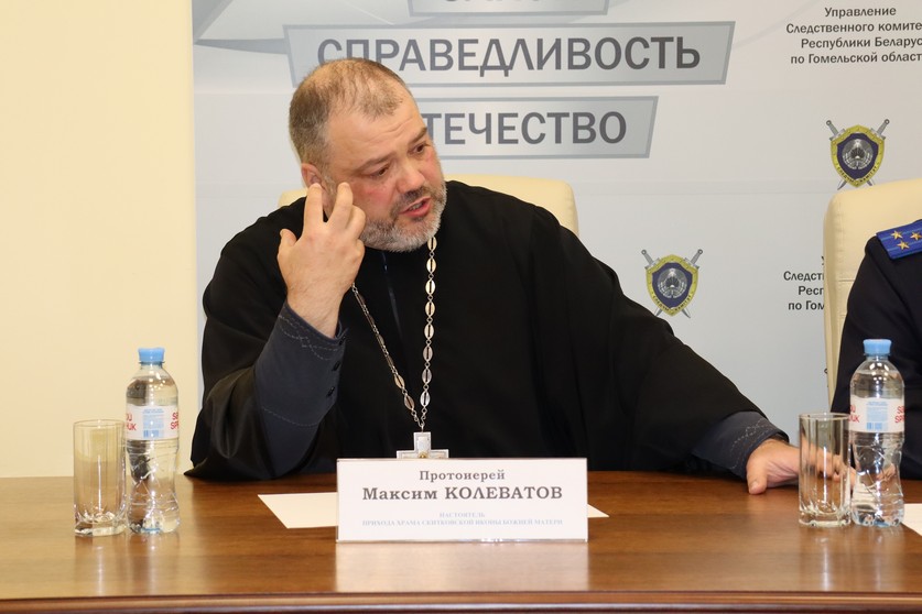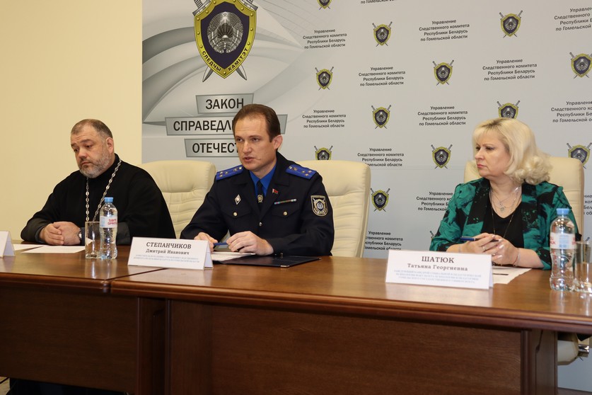 Участниками мероприятия стали заместитель начальника УСК по Гомельской области полковник юстиции Дмитрий Степанчиков, заведующий кафедрой социальной и педагогической психологии факультета психологии и педагогики ГГУ имени Ф.Скорины Татьяна Шатюк. Впервые в подобном формате встречи принял участие священнослужитель – настоятель прихода храма Скитковской иконы Божией Матери протоиерей Максим Колеватов.