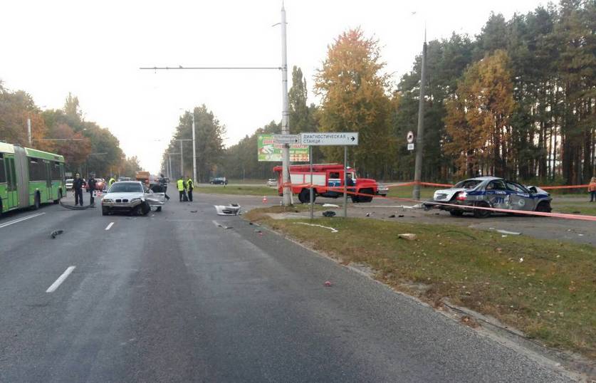 ДТП произошло в г.Гомеле 17 октября около 16 часов на перекрестке улиц Объездная – Лазурная. Следствие располагает информацией, что в момент столкновения на автомобиле оперативного назначения, двигавшегося по встречной полосе, были включены маячки и звуковая сигнализация.