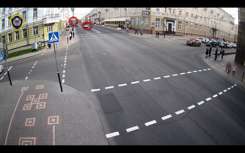 На светофорном объекте для транспортных средств, движущихся по ул.Крестьянской, и на светофорном объекте для пешеходов, намеревающихся пересечь ул.Советскую, горит зеленый сигнал.