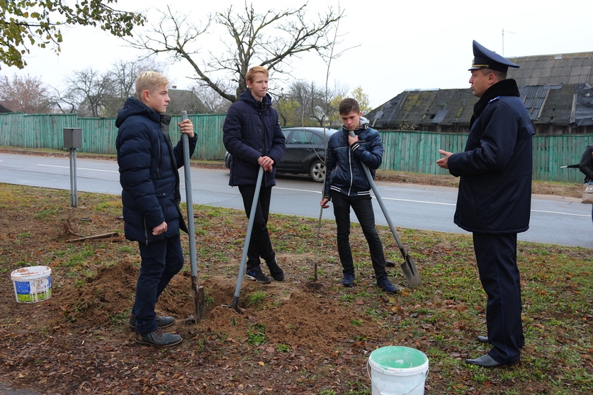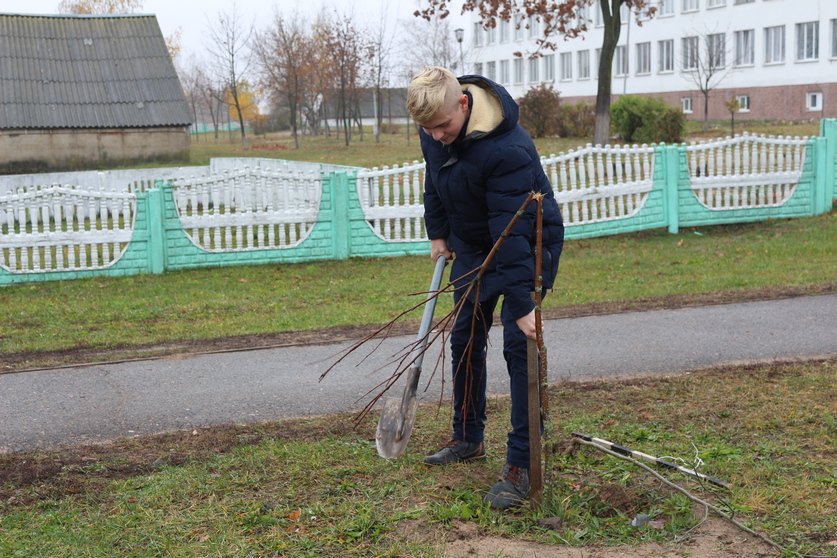 В Рогачеве три школьника взамен сломанных деревьев посадили новые