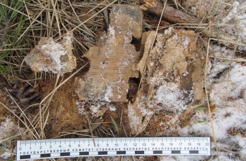 Найденные фрагменты документов были направлены для исследования в управление по увековечению памяти защитников Отечества и жертв войн Вооруженных Сил Республики Беларусь. Согласно поступившим следователям результатам исследования, фрагменты являются частями военного билета рядового Фещенко Петра Моисеевича - уроженца деревни Уласы Комаринского района Полесской области (ныне территория Хойникского района Гомельской области), который числился как пропавший без вести в годы войны.