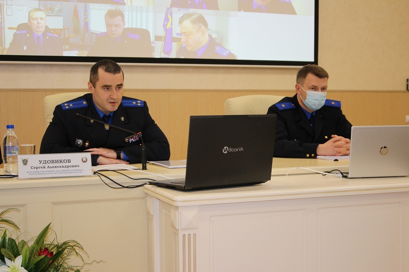В управлении Следственного комитета по Гомельской области состоялось оперативное совещание в режиме видеоконференцсвязи при начальнике управления Сергее Удовикове. В работе заседания принял участие заместитель Председателя Следственного комитета Сергей Аземша.