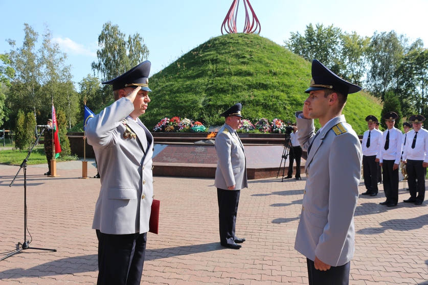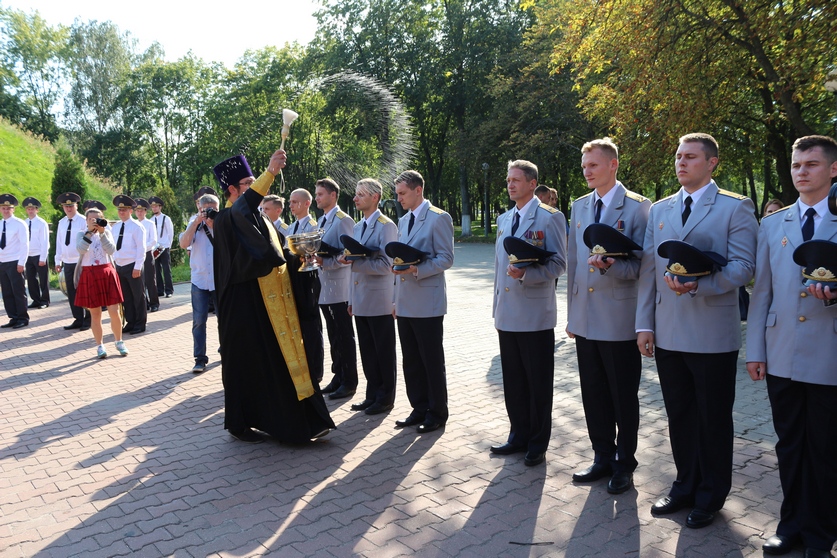11 сентября в Гомеле возле мемориального комплекса «Курган Славы» состоялся торжественный ритуал принесения Присяги сотрудника Следственного комитета Республики Беларусь. В присутствии горожан и многочисленных приглашенных гостей заместитель начальника УСК по Гомельской области Аркадий Третьяков и начальник управления кадров Александр Гулис приняли Присягу у молодых сотрудников следственных подразделений области.