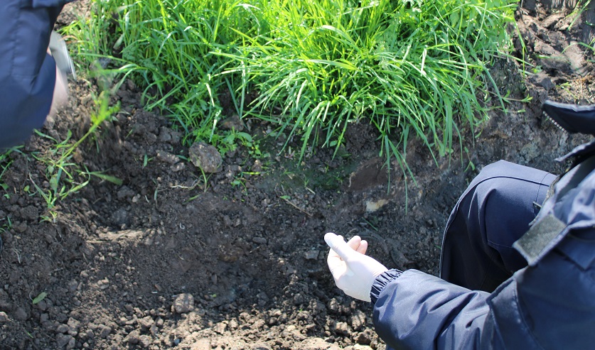 Дальнейшей проверкой следователем Щучинского районного отдела Следственного комитета были установлены очевидцы совершенного преступления, которые дали пояснения о событиях, произошедших летом 2019 года, также установлено местонахождение 63-летнего мужчины, на причастность которого указывала его односельчанка. Мужчина рассказал об убийстве 45-летнего знакомого, пояснил, что может указать, где захоронен труп. После чего следователем совместно со специалистами ГКСЭ осуществлено выбытие к данной местности, где мужчина отметил предположительный участок захоронения.