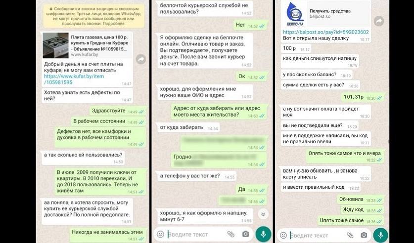 В настоящее время злоумышленники чаще всего используют торговую площадку Kufar, где под предлогом внесения предоплаты за различные товары отправляют потерпевшим фишинговые (поддельные) ссылки, где последние указывают реквизиты своих карт.