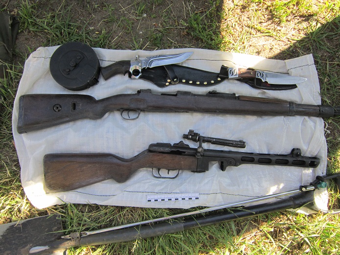 У задержанных изъят целый арсенал опасных находок: два пистолета-пулемета Шпагина, два пулемета Дягтерева, винтовка конструкции Мосина, пистолет-пулемет модели МР-40, 23 гранаты Ф-1, несколько сотен патронов различного калибра, большое количество составных частей к огнестрельному оружию. Изъятое направлено на криминалистическое исследование.