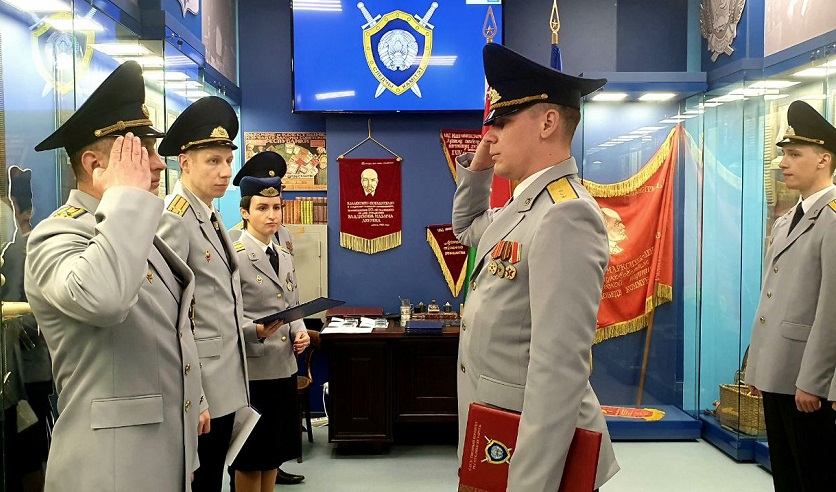 В преддверии Дня Великой Победы, 7 мая, состоялся торжественный ритуал принесения Присяги молодыми сотрудниками следственных подразделений Минской области. Местом проведения ритуала стал историко-демонстрационный музей Следственного комитета Республики Беларусь.