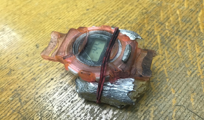 С помощью электронных часов, мыла, фольги и резинки они изготовили муляж взрывного устройства, после чего инвалид показал своему сообщнику нахождение касс в здании и камер видеонаблюдения.