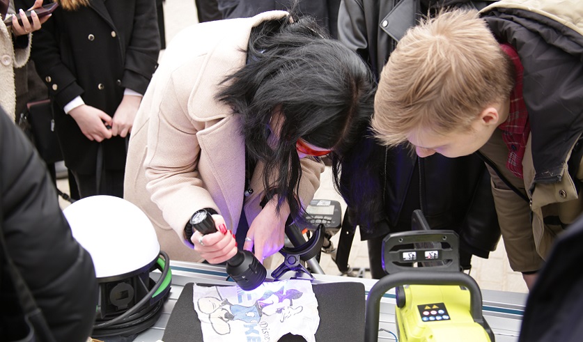 Учащимся продемонстрировали табельное оружие, специальные средства. Они получили уникальную возможность ознакомиться с возможностями передвижной криминалистической лаборатории. Ребята с интересом изучали комплектацию и назначение специальных чемоданов, фототехники, квадрокоптера, осветительной мачты, георадара, металлоискателя и другой техники, а помогали им в этом сотрудники криминалистического отдела УСК. Специалисты своего дела уделили особое внимание особенностям раскрытия преступлений, методам собирания и исследования доказательств, применению возможностей криминалистической техники.
