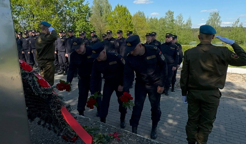 Руководство управления Следственного комитета по Минской области и сотрудники следственных подразделений в преддверии Дня Победы собрались у подножия мемориала в деревне Узляны, чтобы почтить память 5 героев Советского Союза батареи капитана А.К. Леонтюка. В 1944 году за 3 часа ночного боя с немецко-фашистскими захватчиками воины Отечества отбили шесть вражеских атак и уничтожили значительные силы противника.