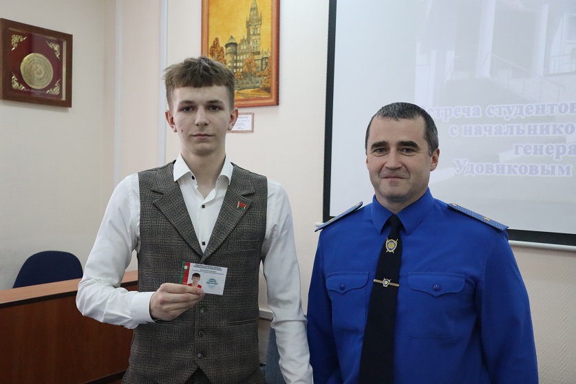 Начальник УСК по Минской области Сергей Удовиков вручил студентам-целевикам БГУ удостоверения внештатных сотрудников