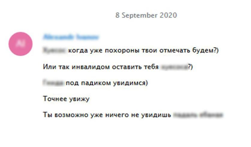 Сообщения носили оскорбительный характер, содержали ненормативную лексику, указывали на реальное намерение применить насилие в отношении более 10 потерпевших.