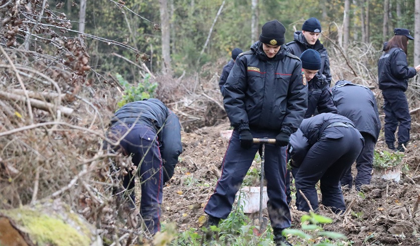 Вместе с сотрудниками Минского РОСК и будущими специалистами — курсантами следственно-экспертного факультета Академии МВД — на территории Пуховичского района были высажены молодые саженцы дубов, ели и сосны. Ведь единение с природой и совместный труд — это не просто полезное дело, но и важный шаг к укреплению командного духа.