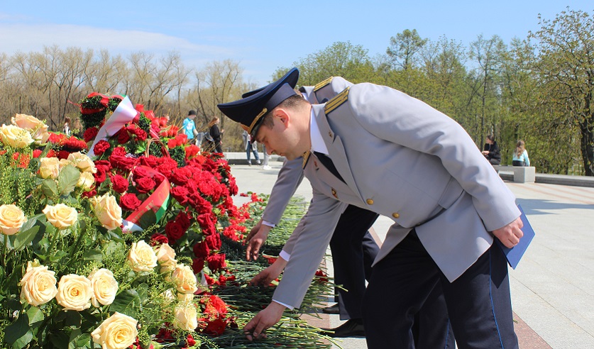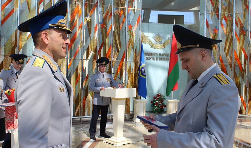 Офицерское собрание не ограничилось только ритуалом принесения Присяги. За многолетний добросовестный труд ряд следователей центрального региона страны получили памятный нагрудный знак «10 год Следчаму камітэту Рэспублікі Беларусь» из рук начальника управления Андрея Лиса. В завершение следователи возложили цветы к обелиску «Город-герой Минск».