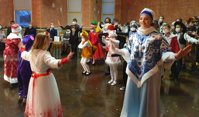Для гостей силами школьников и педагогов был организован концерт. Снегурочка, Дед Мороз и другие сказочные герои в красочном представлении поздравили всех с наступающим Новым годом.