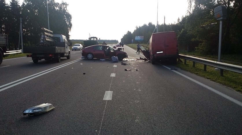 По предварительным данным, водитель легкового автомобиля Renault, 1970 года рождения, двигаясь в направлении Молодечно, не справился с управлением и выехал на полосу встречного движения, где совершил столкновение с грузовым фургоном Mercedes.