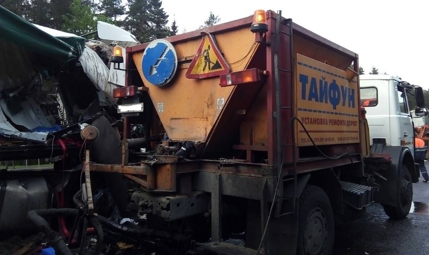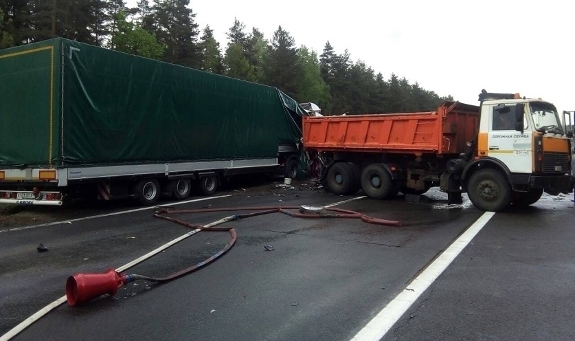 Управлением Следственного комитета по Минской области устанавливаются обстоятельства смертельного ДТП с участием автопоезда и автомобиля дорожной службы.