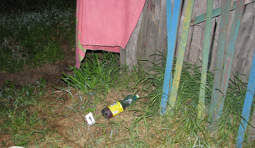 Следственно-оперативной группой проведены осмотры места происшествия, дома и дворовой территории, опрошены жильцы, зафиксирована следовая картина, а также обнаружена бутылка с остатками горючей жидкости и иные фрагменты.