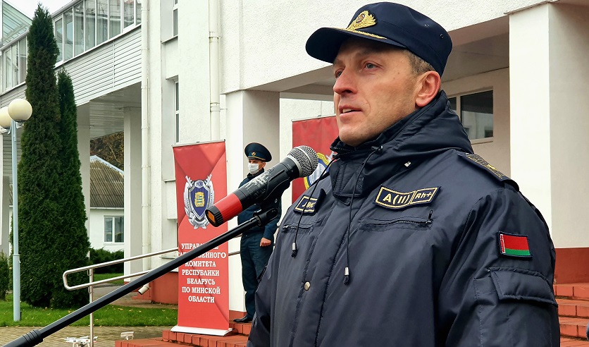 Начальник УСК по Минской области Андрей Лис в своей речи подчеркнул: «Памятный знак выполнен из камня, он символизирует незыблемость устоев белорусского народа, незыблемость традиций следствия. И неслучайно в этом строю находятся не только молодежь, но и опытные руководители следствия, ветераны, которые передают хорошие традиции следствия Минщины молодежи».