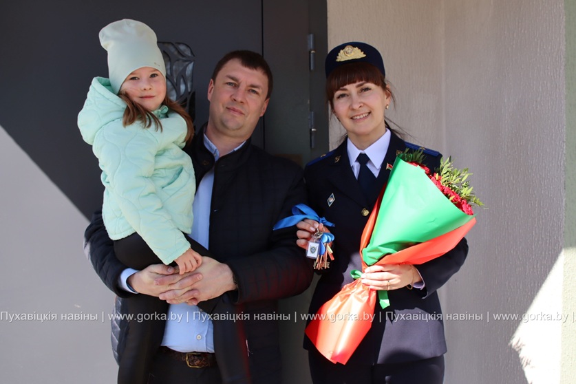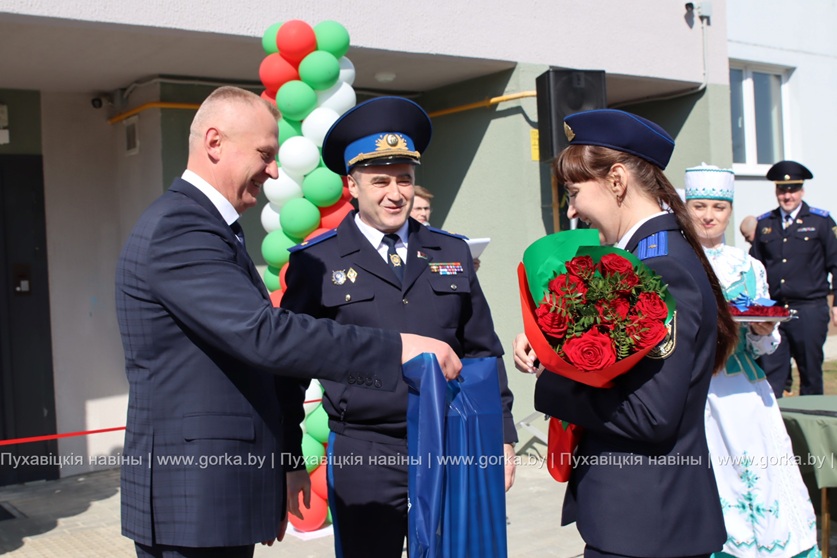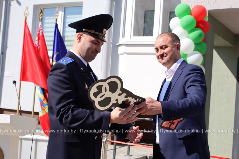 В торжественной обстановке новоселы принимали поздравления от начальника управления Следственного комитета по Минской области Сергея Удовикова, председателя Пуховичского районного исполнительного комитета Андрея Атрушкевича, директора ООО «Пуховичское МПМК-14» Александра Каховича, начальника районного отдела Следственного комитета Виталия Бусла.