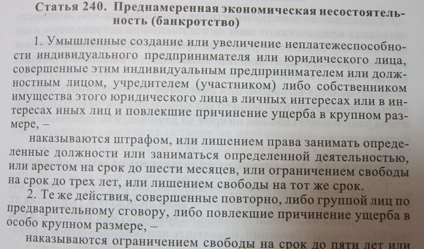 В результате таких действий предприятие стало умышленно неплатежеспособным, а кредитору причинен ущерб в особо крупном размере.