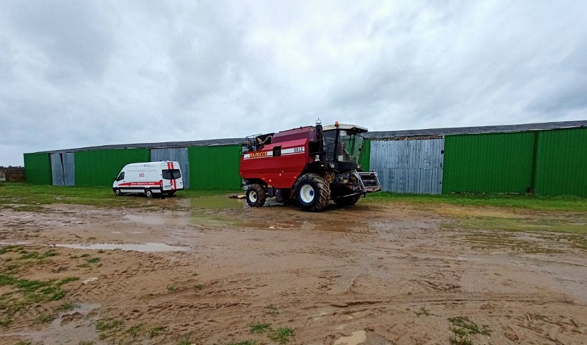 Ближе к обеду трое мужчин собрались доехать на сельскохозяйственной технике к административному зданию, так как в это время шел сильный дождь. Два комбайнера разместились в кабине, а слесарь, в нарушении техники безопасности, решил подъехать на трапе комбайна. При движении уборочной техники, работник организации запрыгнул на лестницу и не удержался. Только через несколько минут мужчины заметили отсутствие коллеги. Остановив сельхозмашину, они подбежали к лежавшему на земле слесарю, но тот уже не подавал признаков жизни.