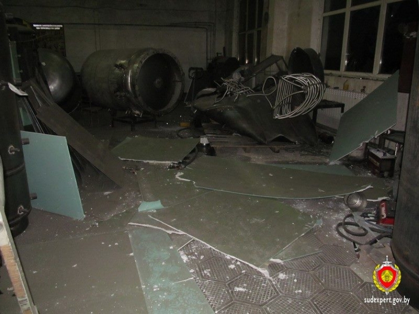 Происшествие имело место днем 2 декабря текущего года в цеху по производству бойлеров-водонагревателей одного из частных предприятий в Воложинском районе. Во время выполнения работ по испытанию на герметичность бака косвенного нагрева воды путем нагнетания воздуха произошел взрыв бака. В результате выполнявший данные работы один слесарь–ремонтник погиб на месте, второй - с телесными повреждениями госпитализирован.