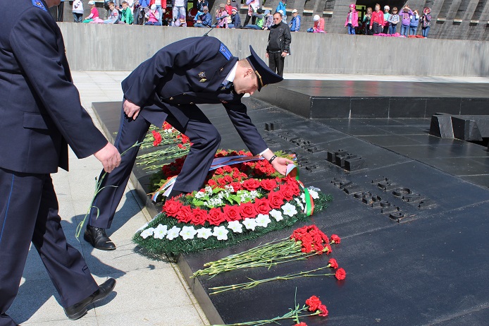 В канун Великого праздника молодые офицеры во главе с начальником управления Следственного комитета по Минской области Павлом Игнатовым посетили это святое для каждого белоруса место, чтобы поклониться памяти и доблести, поблагодарить за счастье жить под мирным небом и помнить, какой ценой оно завоевано.