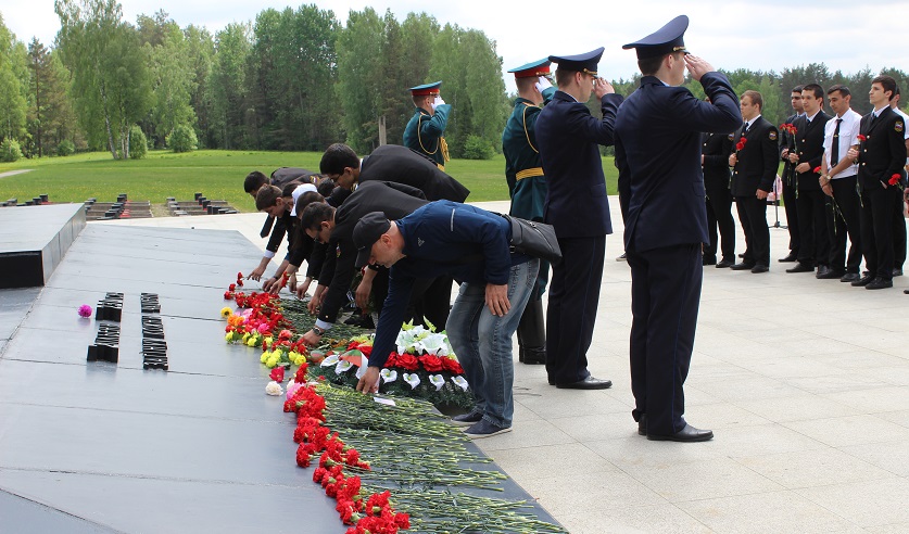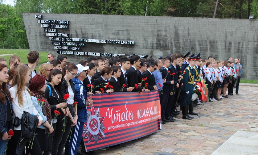 Поклониться героизму в Государственном мемориальном комплексе «Хатынь» 17 мая встретились студенты Всероссийского государственного университета юстиции во главе с ректором Ольгой Александровой и молодые сотрудники управления Следственного комитета по Минской области.