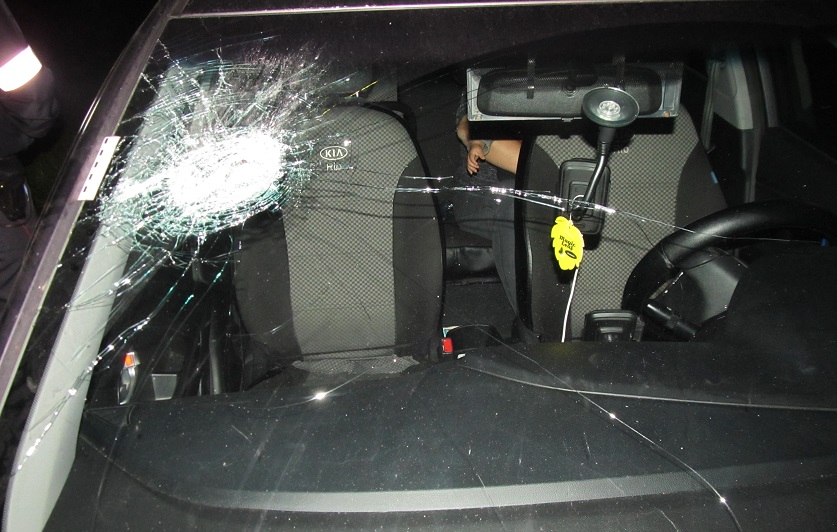Машины не останавливались, и мужчина разозлился. Находясь на обочине, он бросил камень в проезжающий Kia Rio. В результате хулиганских действий повредил лобовое стекло и крышу легкового автомобиля, в котором ехала семья с маленьким ребенком.