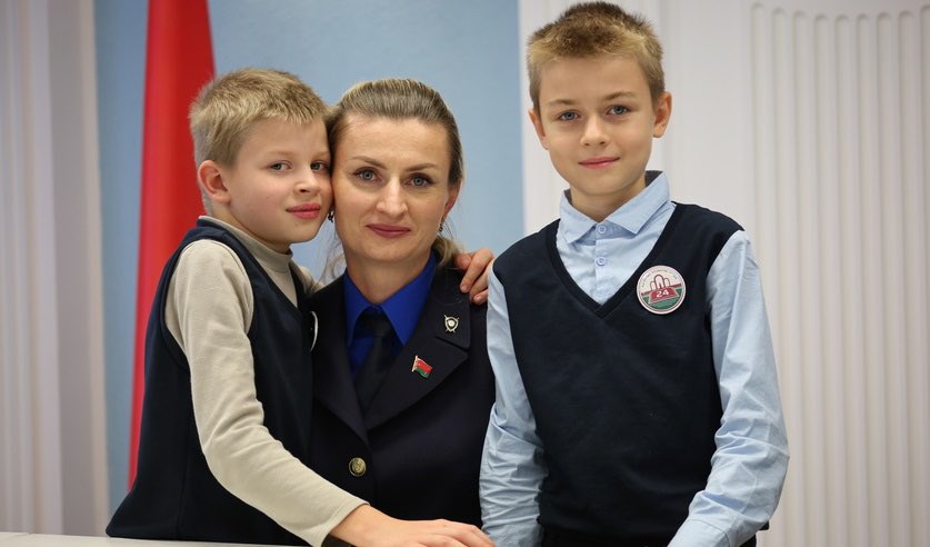 Начальник отдела защиты государственных секретов и документационного обеспечения УСК по Могилевской области Инесcа Самуйлова и ее сыновья Илья и Стас (8 и 6 лет).