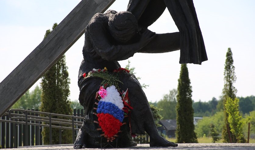 Первая на нашем пути – скульптурная композиция «Беларусь – скорбящая мать» – к ней дети возлагают цветы. Проходит минута молчания.