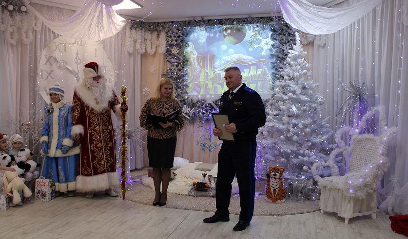 Юных воспитанников центра поздравил начальник управления Следственного комитета Республики Беларусь по Могилевской области Владимир Шалухин. Поблагодарив всех собравшихся в зале за новогоднее настроение, позитивные и искренние эмоции, он пожелал каждому из ребят исполнения самого заветного желания и крепкого здоровья!