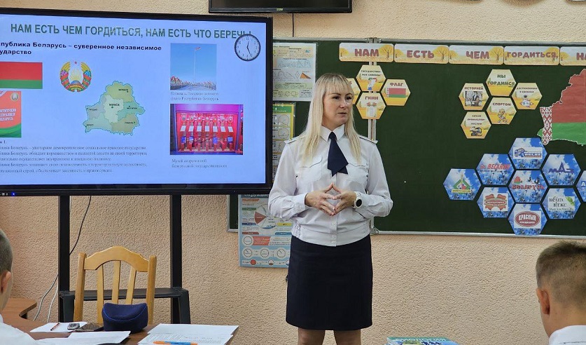 В первый день нового учебного года с будущими выпускниками встретились сотрудницы Следственного комитета. Представительницы УСК рассказали старшеклассникам о тонкостях профессии следователя и от имени первичной организации Белорусского союза женщин пообещали взять шефство над выпускниками, которые в перспективе решат связать свою жизнь со службой в следствии.