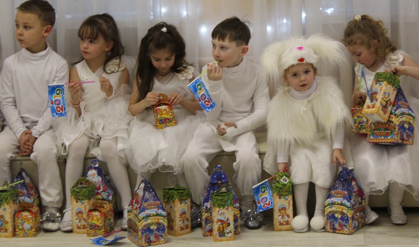 Маленькие артисты в карнавальных костюмах продемонстрировали праздничную программу с театральной постановкой, удивляли и радовали гостей песнями, стихами и танцами, подарив всем присутствующим сказочное и праздничное настроение. Для ребенка Новый год – это время чудес и подарков от Деда Мороза, и каждый малыш считал своим долгом рассказать ему разученный заранее стишок.